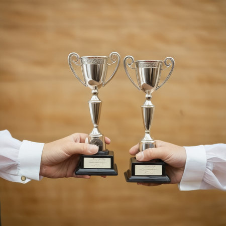 A person holding a trophy or medal, symbolizing recognition and achievement in business.