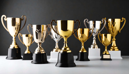 A beautifully arranged trophy display that symbolizes career development and achievement, perfect for capturing motivation and success in elegant settings.