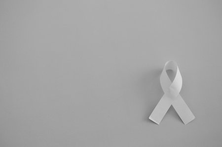 White ribbon on dark concrete background is symbol of protection of traditional family, problem of protecting women from violence