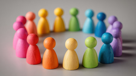 Colorful Wooden Figurines Arranged in a Circle Symbolizing Unity, Diversity, Community, and Connection in Modern Design Setting