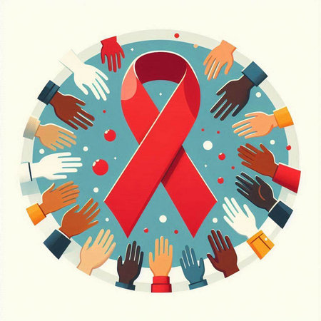 World Aids Day concept with red ribbon and hands. Vector illustration.