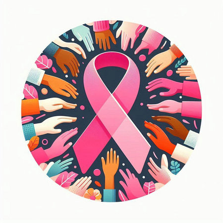 World Breast Cancer Day concept with hands and ribbon. Vector illustration.