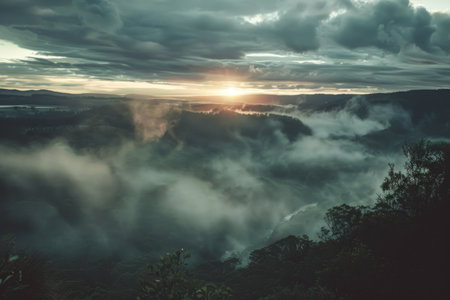 dark fog descending from the mountain after the rain