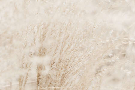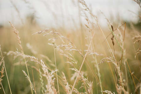 Wild grass field landscape with spikes. Rural scene. Nature concept. Blurred soft focus.