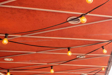 decoration lamp bulbs lighting on a ceiling for Christmas festive.Closeup.