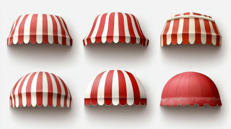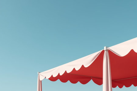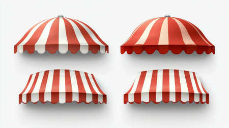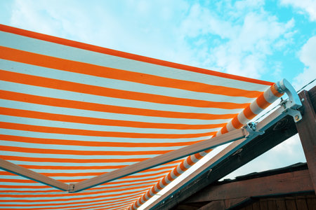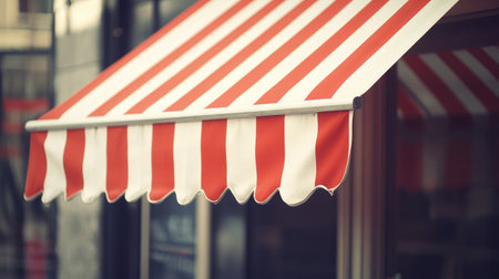 Close-up of a vibrant red and white striped awning, adding charm and style to an outdoor space. Perfect for cafes or shops seeking a classic look.
