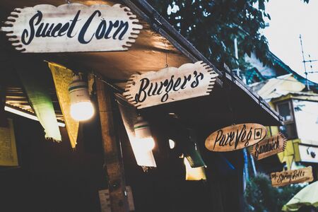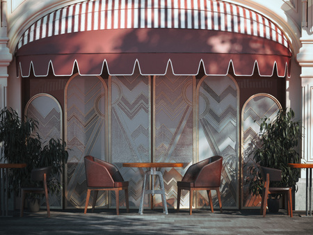 Exterior decoration and furniture at outdoor of cafe, stock photo