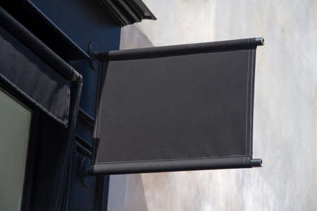Storefront kakemono Mockup. Black Shop sign on a wall in street template