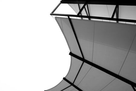 Low angle view, metal sheet roof, filed outside the building. for rain protection, white background