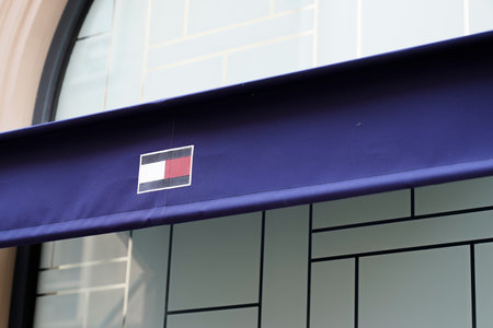 Bordeaux, Aquitaine France - 02 16 2021: tommy Hilfiger sign flag and brand logo store front of American fashion boutique clothing us shop
