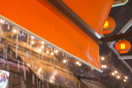 A Rainy Night in the City Filled with Lanterns and a Beautiful Orange Canopy Above