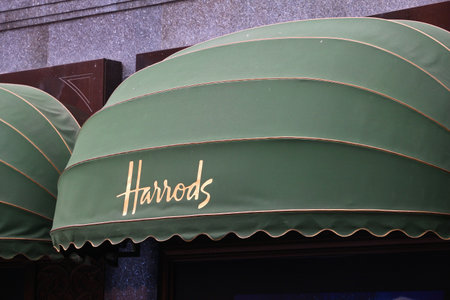 LONDON, UK - JULY 9, 2016: Famous Harrods department store in London. The famous retail establishment is located on Brompton Road in Knightsbridge district.