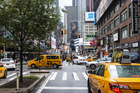 New York, USA - September 20, 2015: Yellow taxi on the street in New York.