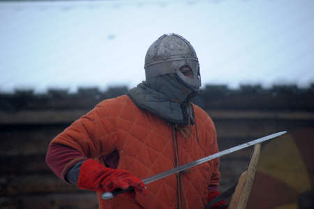 Russia, Saint-Petersburg. 26,01,2014 The festival is a historical reconstruction of the Viking Age in winter. Two Vikings battle swords