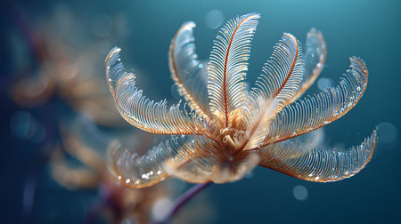 close-up of coral polyps capturing plankton in the dark, created with generative ai