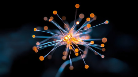 neon glowing microorganisms in colors on a black background. Bright abstract background perfect for any design. Generative AI