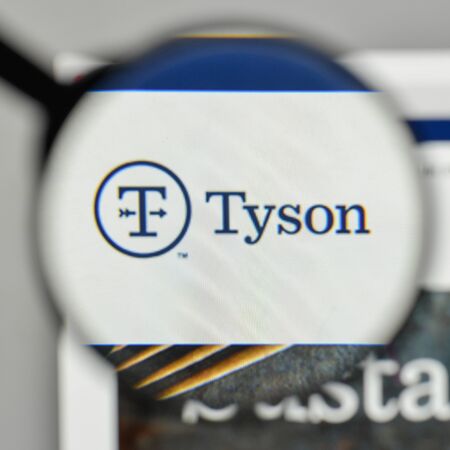 Milan, Italy - November 1, 2017: Tyson Foods logo on the website homepage.