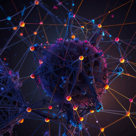Abstract visualization of a neural network with glowing synapses and interconnected nodes representation.