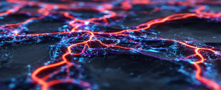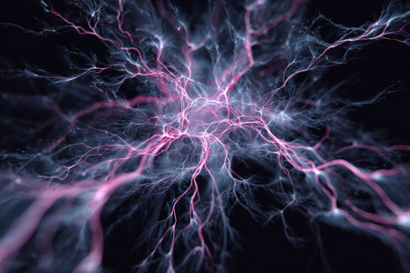 Abstract electric nerves or lightning-style glowing branches over dark background. Sci-fi, energy, or biology themed wallpaper or illustration. Generative AI