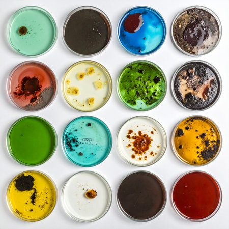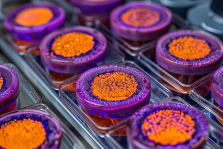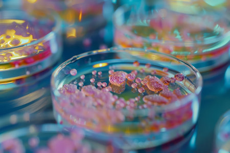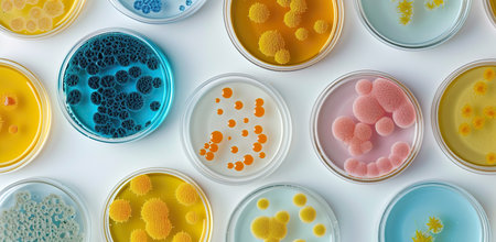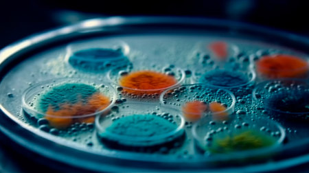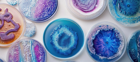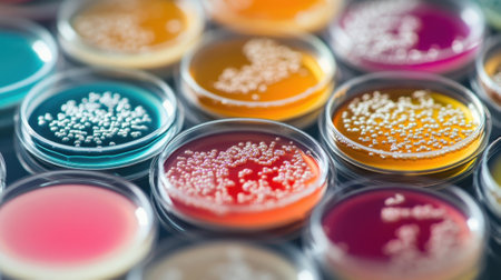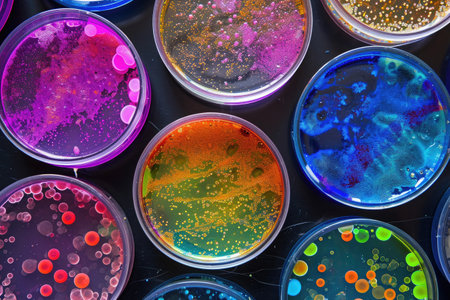 Vibrant petri dishes showcasing bacterial cultures