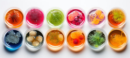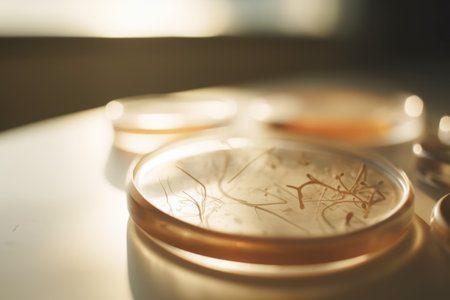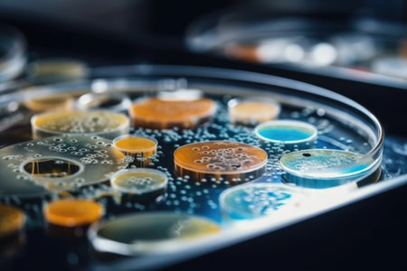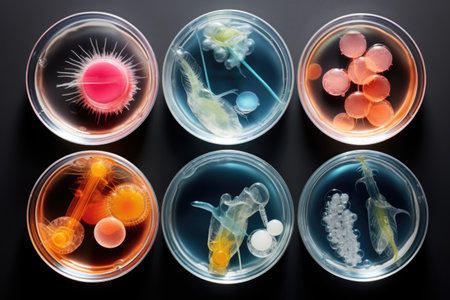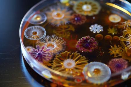 microbial cultures and petri dishes arranged in beautiful, artistic arrangement, created with generative ai