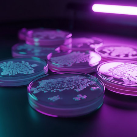 microbial culture growing in petri dish with the help of specialized lighting, created with generative ai