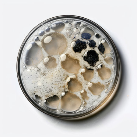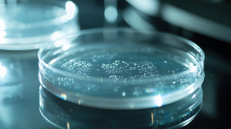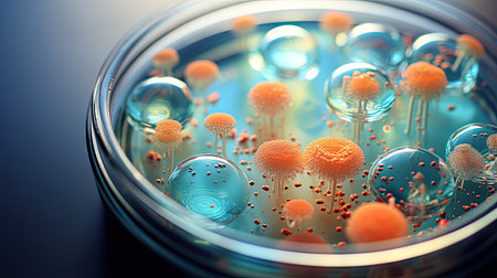 microbial culture growing in petri dish with droplets of water, created with generative ai