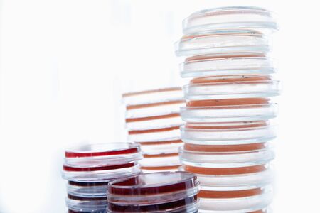 Petri dishes with bacterial colonies in the laboratory, closeup.