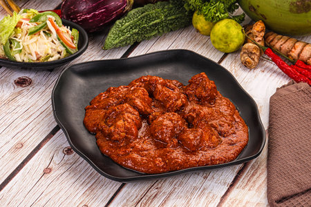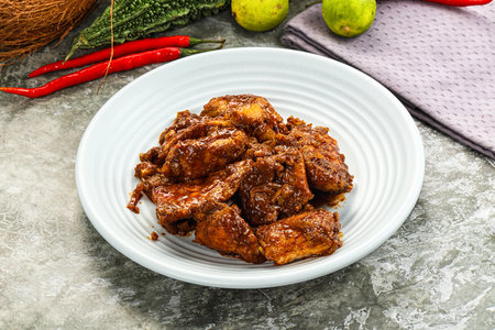 Ayam Masak Merah or Red Chicken- Traditional Malay Cuisine. Chicken cook with herbs, spices and tomatoes