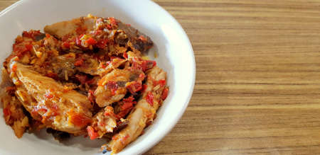 Ayam sambal balado or spicy fried chicken is Traditional food from Padang, West Sumatra