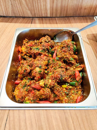 Authentic Sundanese Spicy Chili Chicken Served in Metal Catering Tray