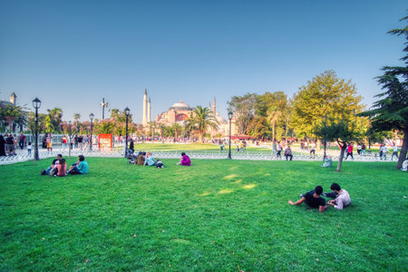 Istanbul, Turkey- September 17, 2017: External view of Hagia Sophia, a monument first born as a church, then a mosque, and now a museum visited by millions of people