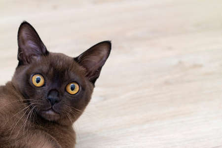 Close up of expressive cat s face with emotive eyes in pets and lifestyle concept