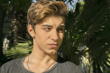 Excited teenage boy expressing happy emotions closeup portrait