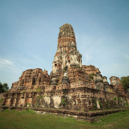 Brick towers of an ancient Buddhist temple Wat Phra Mahathat (Mahatat) - Ayutthaya, Thailand.