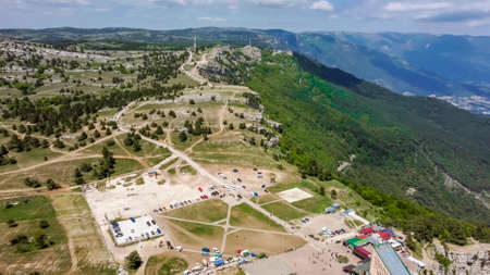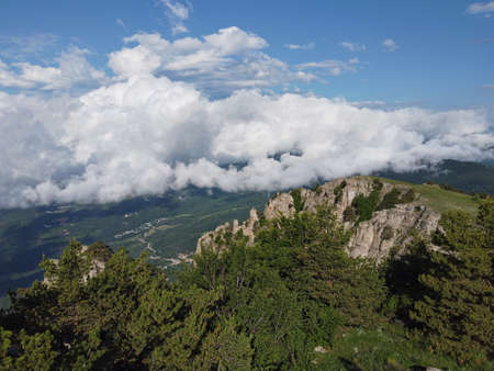 Yalta. Crimea. may 28, 2021. flight over the peak of ai petri mountain.