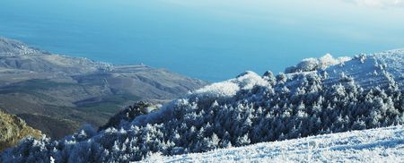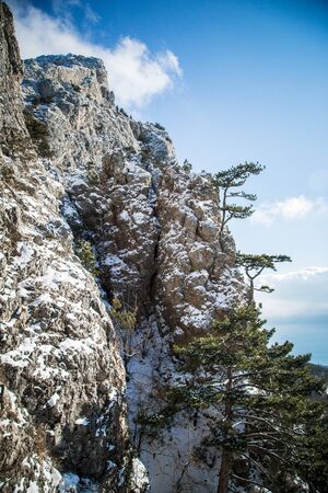 Mountains, hills and rocks on the Black Sea coast of Crimea in winter