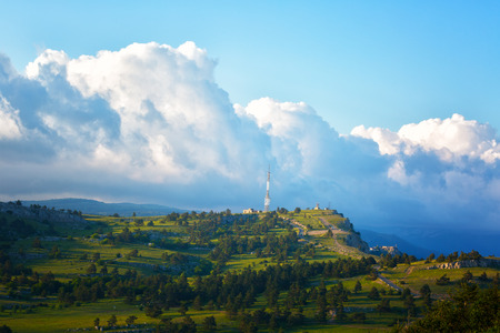 Beautiful view of the cloudy sky from the viewpoint of Tahtali Mountain in the region of Antalya, Turkey. Tahtali Dagi, Antalya Province, Turkey
