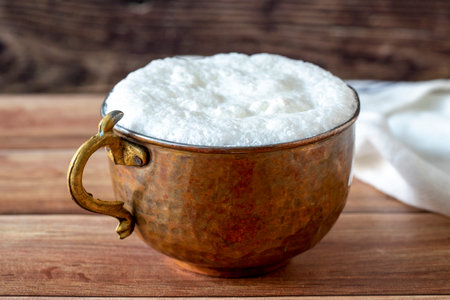 Ayran - Traditional Turkish yoghurt drink in a copper cup