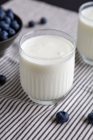 Organic Probiotic Milk Kefir Yogurt in Glass Cup Ready to Drink. Traditional Healhty Beverage.