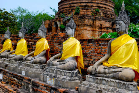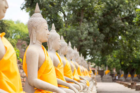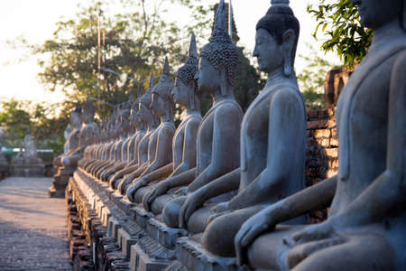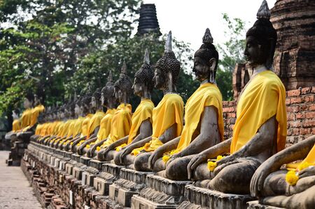 Row of buddha image in wat yai chai mongkol, Ayutthaya, Thailand