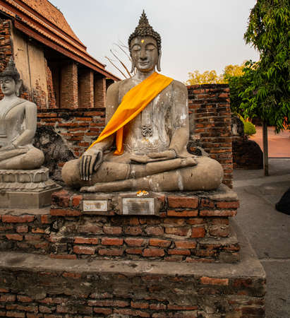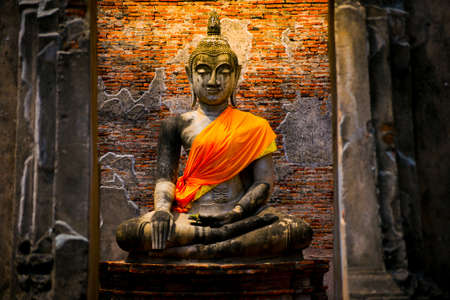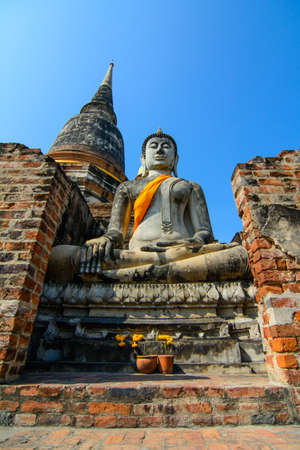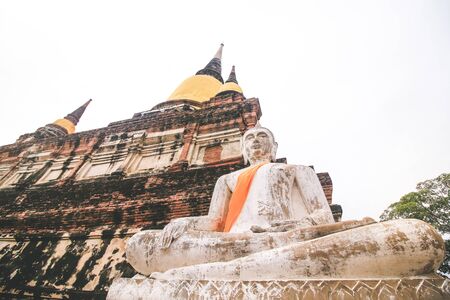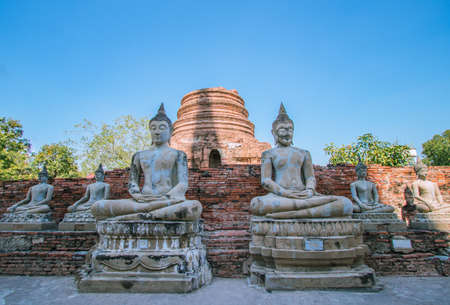Ancient Buddha statue at Wat Yai Chaimongkol in the historical city, Ayutthaya, Thailand