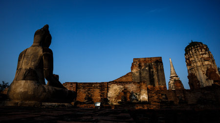 Ruin of ancient buddha temple in Ayutthaya thailand