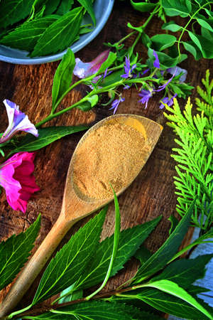 Preparation of medicines from medicinal herbs and plants.Medicinal herbs,healing plants in tray