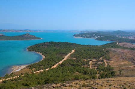 Ayvalik, Turkey, Cunda Island, panoramic view from the mountain of lovers to the city and the Aegean Sea