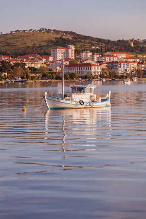 IZMIR, TURKEY - JUNE 05, 2019 : Fishing boats in touristic place of Aegean Region in Phocaea Town with old and historical, traditional architecture buildings. Phocaea is ancient city in old dates.
