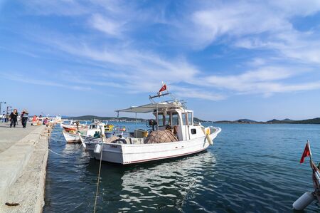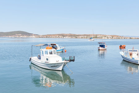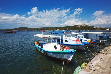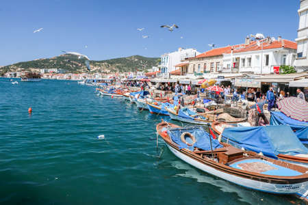 BALIKESIR, TURKEY - MAY 20 2016: Fishing boats in Alibey Cunda Island Balikesir Turkey. Cunda Island, also called Alibey Island is the largest of the Ayvalik Islands archipelago in Turkey