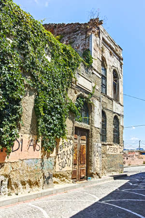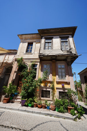 ISTANBUL, TURKEY - JULY 27, 2019: Typical street and building in Balat district in city of Istanbul, Turkey