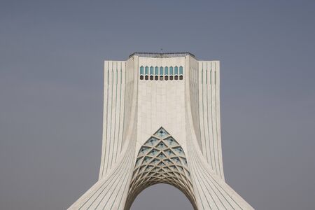 TEHRAN, IRAN - 7 May 2018. Top section of Azadi Tower formerly known as the Shahyad Tower is a monument located at azadi square and is an architectural landmark of Tehran