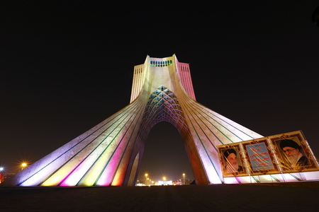 The night view of Tehran freedom monument in Iran